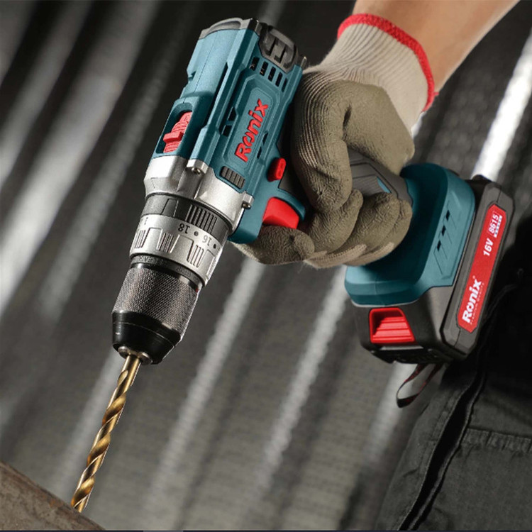 دریل پیچگوشتی چکشی شارژی 16 ولت 8615 رونیکس، ابزاری قدرتمند با سه عملکرد مجزای سوراخکاری، پیچکاری و سوراخکاری چکشی است. این ابزار از یک سه نظام اتوماتیک و قدرتمند 10 میلیمتری تمام فلزی بهره میبرد که نسبت به فشار حاصل از فعالیت در سطوح متراکم مقاومت خوبی از خود نشان میدهد. همچنین، عملکرد مناسبی را در حین سوراخکاری سطوح بتنی، فلزی و چوبی از خود نشان میدهد. طراحی ارگونومیک و مقاوم بدنه، گیربکس دو حالته، امکان تغییر گشتاور با تنظیمات کلاچ در 18 حالت مختلف، ارائهی ابزار با کیف BMC مقاوم به ضربه به همراه متعلقات کاربردی، از مهمترین ویژگیها و مزایای دریل پیچگوشتی چکشی شارژی ترکمتردار دو سرعته 16 ولت رونیکس، با مدل 8615 هستند.