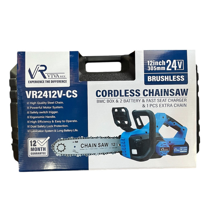 اره زنجیری 30 سانتی متری 2 باطری براشلس ویوارکس مدل VR2412V-CS از بهترین اره های زنجیری و شارژی بازار است که با موتور براشلسی که دارد از پس هر کاری بی می آید.