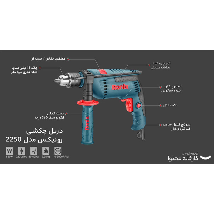 دریل چکشی رونیکس مدل 2250 دریل چکشی رونیکس مدل 2250 یک ابزار قدرتمند است که با ویژگیهای منحصر به فرد خود از جمله سیستم چرخش چپ، سیستم چرخش راست و محدوده ولتاژ 180-240، توانسته است توجه بسیاری از خریداران را به خود جلب کند. این محصول همراه با دسته، خط کش، و سه سیستم است. در ادامه به بررسی دقیق این محصول میپردازیم. معرفی به دریل چکشی رونیکس مدل 2250 دریل چکشی رونیکس مدل 2250 یکی از بهترین گزینهها برای کاربران حرفهای و نیمه حرفهای است. این دریل چکشی دارای ویژگیهایی از جمله سیستم گردش چپگرد و راستگرد است که این ویژگی باعث افزایش دقت و کارایی در استفاده از آن میشود. همچنین ولتاژ ورودی این مدل از 180 تا 240 ولت بوده که این موجب میشود که بتوان از آن در مکانهای مختلف با ولتاژهای متفاوت استفاده کرد. عملکرد و کارایی با توجه به دادههای ارائه شده، سیستم گردش چپگرد در دریل چکشی رونیکس مدل 2250 بسیار قدرتمند و کارآمد است. این سیستم به کاربر امکان میدهد تا به راحتی و با دقت بالا انواع مختلفی از مواد را حفر کند. این ویژگی از اهمیت بسیاری برای صنایع مختلفی همچون ساختمانی، چوب و فلزات برخوردار است. سیستم گردش راستگرد کارآمد، محدوده ولتاژ و تاثیر آن بر عملکرد سیستم گردش راستگرد در این دریل نیز بسیار کارآمد و با کارایی بالا عرضهشدهاست. این ویژگی به کاربر امکان میدهد تا به راحتی و با دقت بالا انواع مختلفی از مواد را حفر کند. سیستم گردش راستگرد این دریل از اهمیت بسیاری برای کاربران خانگی و حرفهای برخوردار است. با توجه به بررسیهای انجام شده، محدوده ولتاژ برق بین 180 تا 240 ولت بر روی عملکرد و کارایی دریل چکشی رونیکس مدل 2250 تاثیرگذار است. ولتاژ ورودی برق بر روی سرعت چرخش و قدرت حفر مواد تاثیر مستقیم دارد و انتخاب دریل با محدوده ولتاژ مناسب میتواند به بهبود عملکرد و کارایی کاربران کمک کند. دسته خط و قابلیت سهنظامی دریل چکشی رونیکس مدل 2250 دارای دستهای ارگونومیک و طراحی مناسب برای استفاده طولانی مدت است. همچنین این مدل به همراه خط کشی طراحیشدهکه به کاربر امکان میدهد تا به راحتی و دقت بالا، خطوط مورد نظر خود را بکشد.