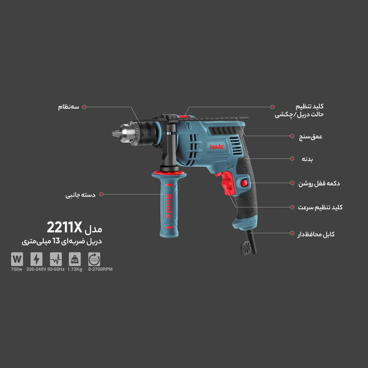 دریل چکشی رونیکس مدل 2211X