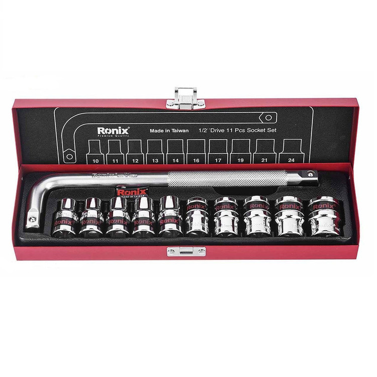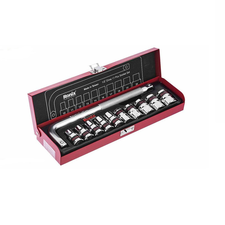 وکش آینه ای جعبه تمام فلزی مستحکم شامل بکس های 2/1 اینچی با سایز های 10، 11، 12، 13، 14، 16، 18، 19، 21 و 24 میلی متر دسته کمکی L شکل
