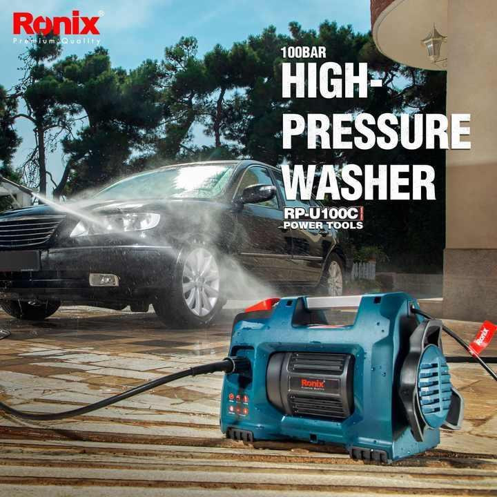 دارای دسته حمل دستگاه دارای شلنگ فشار قوی 5 متری دارای لانس قابل تنظیم مجهز به قرقره ی جمع کننده ی شلنگ به همراه 2 عدد لانس، شلنگ، سوزن تمیز کننده نازل، تفنگ، مخزن مواد شوینده