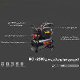 کمپرسورها نیز مانند پمپها به منظور ایجاد نیرویی مناسب برای حرکت سیالات استفاده میشوند. بیشترین میزان استفاده از کمپرسورهای هوا در صنعت است اما این تجهیزات با قدرتهای کمتر نیز به منظور انجام کارهای نیمه صنعتی مورد استفاده قرار میگیرند. محصولی که در تصویر مشاهده میکنید کمپرسور مدل «RC-2510» است که توسط شرکت «رونیکس» (Ronix) تولید میشود و توانی برابر 1492 وات دارد و برای مصارف صنعتی و غیر صنعتی مناسب است. منبع تغدیهی این کمپرسور برق 220 ولت شهری بوده و قادر است جریانی با حداکثر فشار 116 پی اس آی ایجاد کند. این کمپرسور ظرفیتی برابر 25 لیتر دارد و دبی آن 200 لیتر بر دقیقه است. این محصول دارای فشارسنج بوده و میزان فشار را به خوبی نمایش میدهد. یکی از نقاط قوت کمپرسور در قسمت خروجی آن است و از دو نازل خروجی بهره میگیرد. در این صورت میتوانید دو جریان خروجی هوایی داشته و با کمک شیری که در بالای آن قرار دارد دبی خروجی را کنترل کنید. در صورتی که فشار هوای داخل مخزن بیش از حد شود، سوپاپ اطمینانی وجود دارد که با خروج هوا میزان فشار را سریعا کاهش میدهد. این محصول دارای کلید استارتی با تکنولوژی LEFCO بوده و به صورت چرخشی عمل میکند. این کمپرسور حجمی بالا دارد و برای جابهجایی راحتتر آن میتوانید از چرخ و دستگیرهی تعبیه شده برای آن استفاده کنید. به همراه این کمپرسور یک روغن روانکاری نیز عرضه میشود.