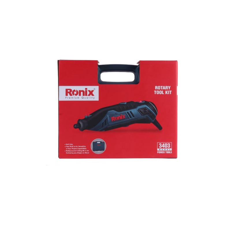 فرز برقی مینیاتوری 3403 به همراه متعلقات کاملی از ابزار و تجهیزات کاربردی برای سنباده زنی، برش، کنده کاری، صیقل دادن و ... بر روی سطوح چوبی ارائه می شود. این دستگاه مجهز به موتوری با توان 130 وات بوده که چرخشی بالغ بر 10000 تا 35000 دور در دقیقه فراهم می کند. این دستگاه از وزن سبک و کارایی بالا برخوردار است و با بهره مندی از سری ها و متعلقات گوناگون در ایجاد برش و شیار بر روی چوب کاربرد دارد. کولت 3.2 میلی متری فرز مینیاتوری 130 واتی رونیکس با سری ها و متعلقات مختلف مطابقت دارد. از دیگر ویژگی های این ابزار برقی می توان به سیستم قفل کن پین اشاره کرد که باعث تغییر آسان سری و متعلقات کاربردی و نیز افزایش ایمنی کاربر می شود