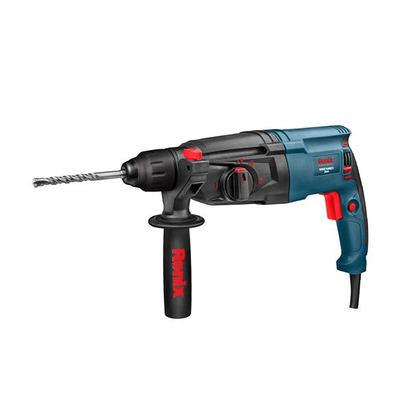شرکت رونیکس Ronix با ارائه چندین مدل دریل بتن کن در کلاس ها و وزن های مختلف، انتخاب یک دریل بتن کن مناسب را برای مشتریان راحت تر کرده است. دستگاه پیش روی شما که جزو سبک ترین مدل های بتن کن و مناسب کارهای نصب در پروژه های ساختمانی میباشد مدل 2701 رونیکس است و با وزن 2.6 کیلوگرم و ابعاد 38 × 21 × 8 سانتیمتر، یک دریل بتن کن ضربهای با قدرت 800 وات است. سرعت این دریل در حالت بی باری تا 1100 دور بر دقیقه میرسد و دارای قابلیت کنترل سرعت است. این دستگاه هم برای مصارف خانگی و هم برای استفاده در کارگاههای ساختمانی و صنعتی بسیار مناسب است. این دریل توانایی سوراخکاری در چوب، فلز و بتون را دارد و حداکثر قطر سوراخ در این دستگاه در چوب، فلز و مصالح، به ترتیب 30، 13 و 26 میلیمتر است و برای تعویض مته نیازی به آچار ندارد و با ضامن موجود در گلویی دستگاه به سادگی انجام پذیر است. بتن کن 2701 از متریال درجه 1 و تحت استانداردهای روز اروپا توسط شرکت خوش نام رونیکس ساخته و به بازار ارائه گردیده است. از دیگر مزایای این دستگاه کلید چپ گرد راستگرد آن است که در انتهای دستگاه به گونه ای تعبیه گردیده که به سهولت از دو طرف دستگاه قابل تغییر است. .علاوه بر این، برخلاف مدلهای دیگر که کلید چپگرد راستگرد آنها روی شاسی دستگاه نصب شده است از مقاومت بالایی برخوردار است.
