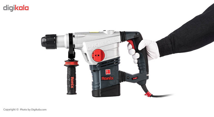 چنانچه به دنبال دریل بتن کن هستید، میتوانید محصول شرکت «Ronix» «رونیکس» را انتخاب کنید. این دریل بتن کن تحت عنوان مدل (2740) به بازار عرضه شده است. منبع تغذیه این ابزار برق بوده، ولتاژ آن 220 ولت و دارای ابزارگیر پنج شیار است. اقلام همراه این دریل بتن کن عبارتند از: کیف، دفترچه راهنما، دو عدد مته چکشی و سه عدد مته چرخشی، گریس، دسته جانبی، میله عمق سنج، درپوش غبارگیر و آچار مخصوص. وزن این ابزار 6.8 کیلوگرم است. سرعت گردش آزاد این محصول 450 دور بر دقیقه بوده، نرخ ضربه آن 2800 ضربه در دقیقه و توان آن 1250 وات است. حداکثر قطر سوراخکاری در مصالح این محصول 40 میلیمتر است و قابلیت وارد آوردن 10 ژول انرژی در هر ضربه را دارد. این دستگاه به هنگام کار نیروی بسیار زیادی را وارد میکند و دارای استاندارد ISO 9001: 2008 بوده و از عملکرد بسیار خوبی برخوردار است.